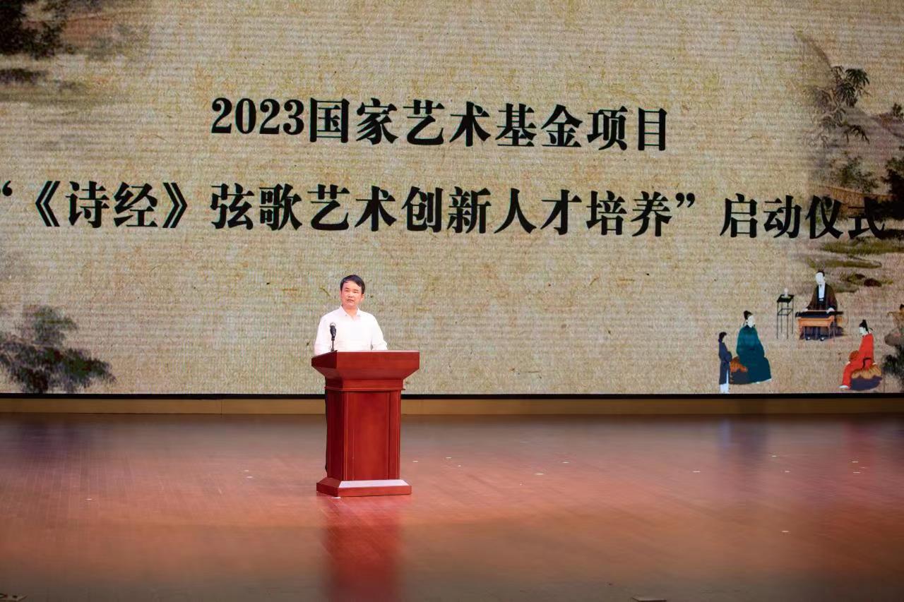 张龙海在启动仪式上致辞。他表示,学校获批国家艺术基金,实现了在国家社科领域的又一突破。“《诗经》弦歌艺术创新人才培养项目”的实施将对促进两岸文化交流、增强两岸文化认同,推动古典诗词与民族音乐融合发展,创新中华经典文化传播发挥积极作用。