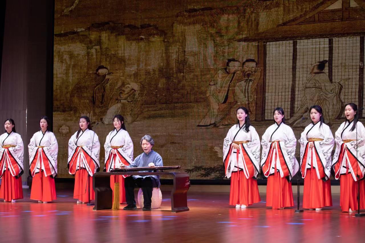 启动仪式结束后举行诗心琴韵弦歌晚会。弦歌,即抚琴而歌,是中国古琴艺术的重要表现形式之一。晚会现场,来自海峡两岸的古琴名家和我校师生为观众带来弦歌表演《大学》《诗经》《鹿鸣操》《流水》《长门怨》《酒狂》《阳关三叠》《春江花月夜》等经典曲目,琴音悠扬婉转,歌声情意真切。