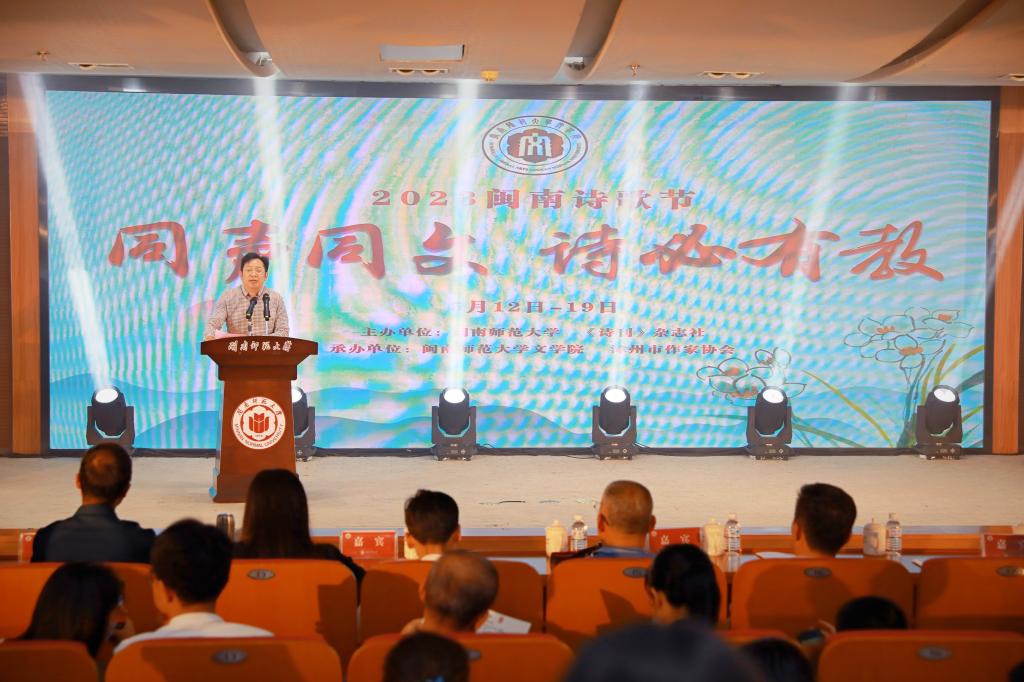 5月13日晚,由我校和《诗刊》杂志社主办,文学院、漳州市作家协会承办的2023闽南诗歌节在我校开幕。校党委书记吴彬镪,党委常委、副校长何绍福,韩山师范学院副校长黄景忠出席,《诗刊》杂志社、漳州市教育局、漳州市作家协会等单位负责人,文学院领导班子和闽南地区部分高校、中小学师生代表等参加开幕式。