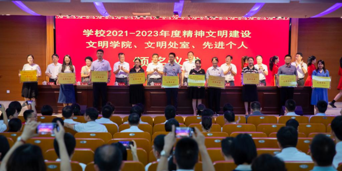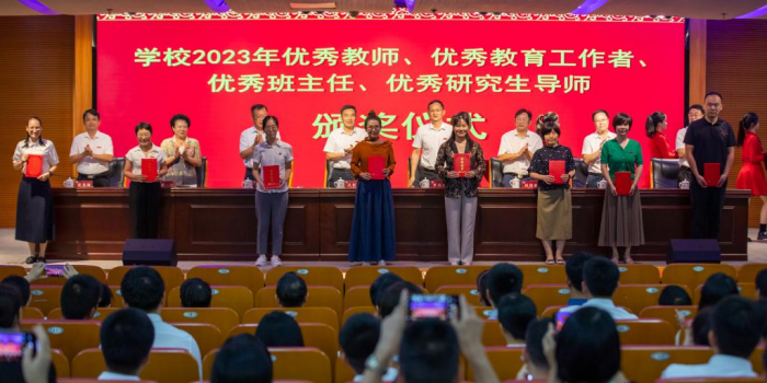 9月8日下午,我校在逸夫图书馆五楼报告厅举行2023年教师节庆祝大会。全体在家校领导,全校中层干部,一年来新入职教职工、退休教职工、学生代表,以及接受本次大会表彰的代表参加会议。会议由校党委副书记肖庆伟主持。