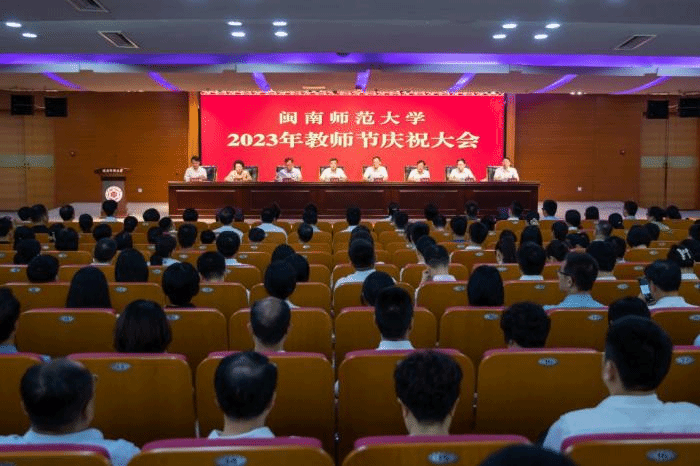 校党委书记吴彬镪在会上讲话。他指出,近年来,学校坚持实施人才强校战略,着力做细做实教师引、育、用、留“四篇文章”,推动师资队伍结构持续优化,教师队伍整体能力素质得到显著提升,为学校顺利实现办学层次的历史性突破奠定了坚实基础。他希望全校教师牢记习近平总书记的殷切希望,把“坚定理想信念、陶冶道德情操、涵养扎实学识、勤修仁爱之心”落到实处,切实为学生成长成才“提灯引路”。要站位靠前,点燃“引路人”的灯。自觉加强自身建设,以深化拓展主题教育成效为契机,不断完善知识体系,引导学生弘扬正能量、厚植家国情怀。要学践同行,提稳“同路人”的灯。坚持涵养师德师风,言传身教,主动关心学生思想发展、身心健康和个人成长,陪伴、教育、引导学生成为有大爱大德大情怀的人。要锐意进取,举好“开路人”的灯。持续强化创新意识和前瞻思维,敢于做“拓荒者”,开辟属于闽南师大的新赛道,不断提高科研创新成果的质量,为国家重大战略需求和经济社会发展作出更大贡献。
