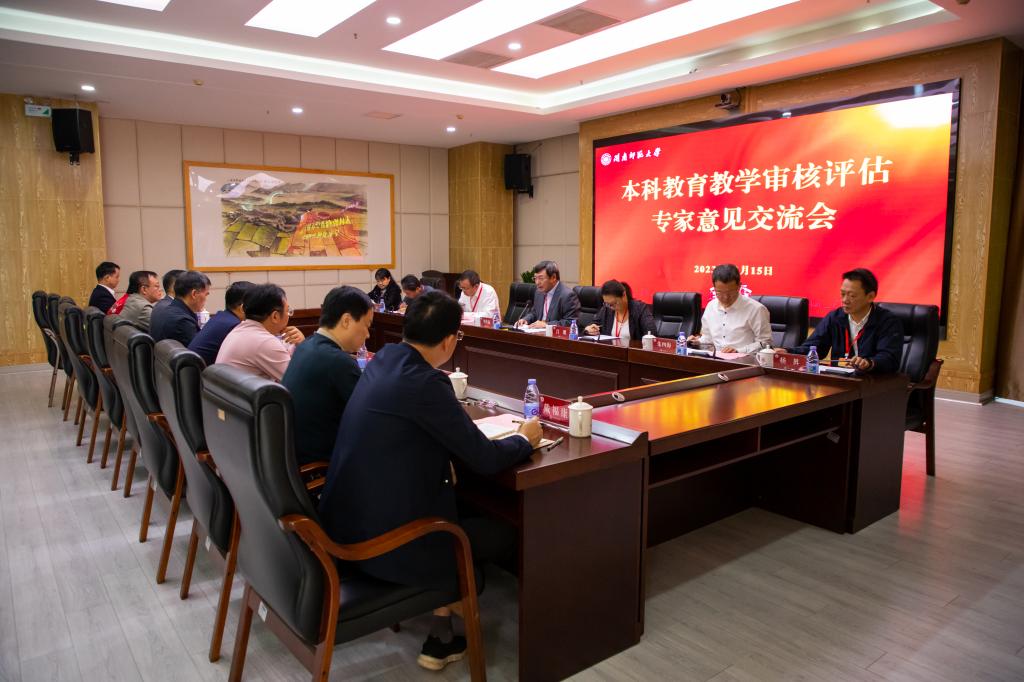 11月15日,tyc5997太阳集团本科教育教学审核评估专家意见交流会在科技信息楼1607会议室召开。审核评估入校评估专家组全体成员,福建省教育厅专职副总督学黄建顺、高等教育处和教育评估研究中心人员,全体校领导出席。会议由专家组组长、南宁师范大学教授李传起主持。
