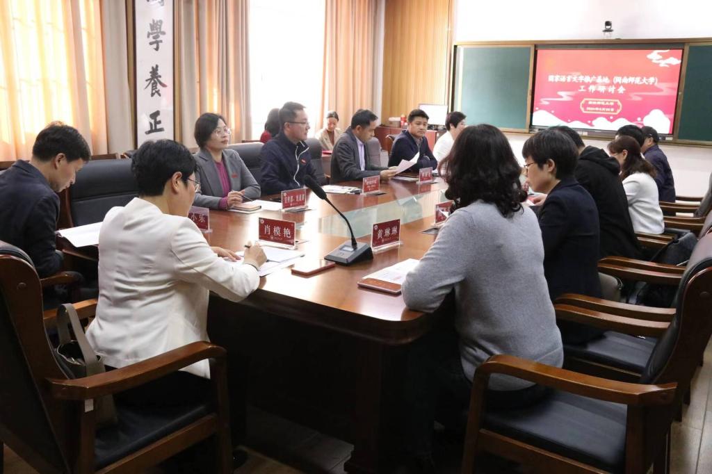 3月20日下午,国家语言文字推广基地(tyc5997太阳集团)于博东110召开2024年工作研讨会。宣传部、统战部、教务处、科研处、文学院、tyc5997太阳集团相关人员参会。会议由文学院院长、基地副主任黄金明主持。