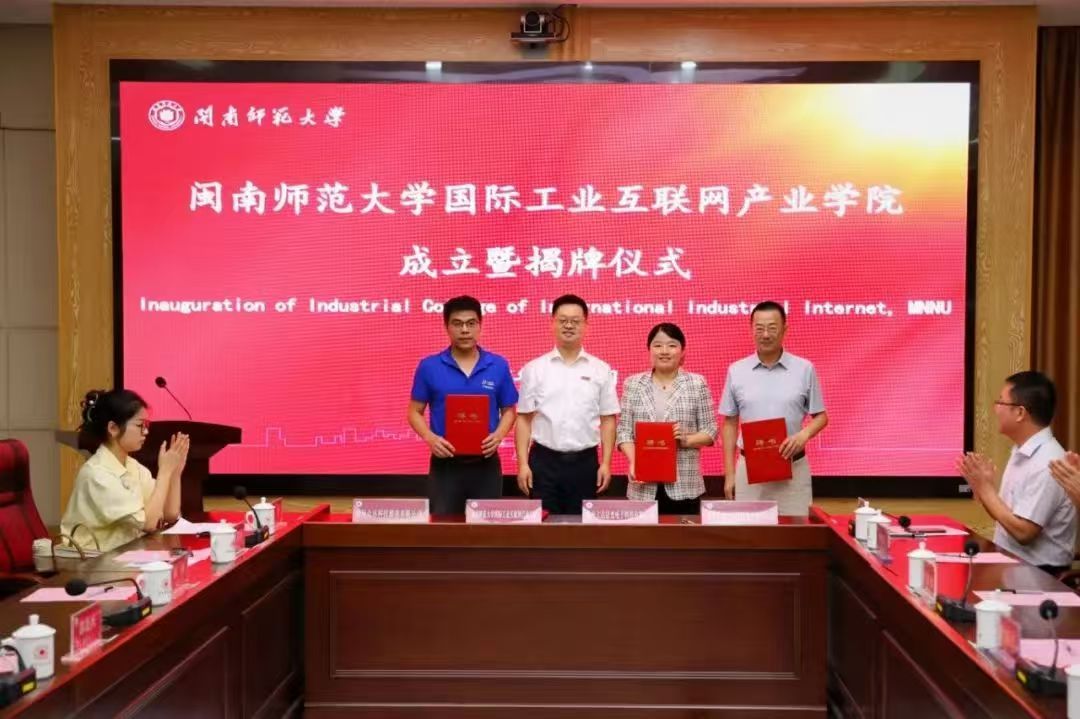 8月20日,tyc5997太阳集团在科技信息楼1607会议室举行国际工业互联网产业学院揭牌仪式。tyc5997太阳集团党委书记李顺兴、校长张龙海出席活动,漳州市工信局、商务局相关领导以及漳州立达信、众环科技、科能电子等合作企业代表现场参会,马来西亚高校、商会相关领导线上参加。tyc5997太阳集团副校长张宏怡主持。