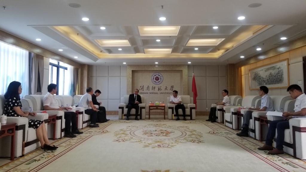 9月12日,日本岛根大学校长服部泰直一行莅校访问交流。我校党委吴彬镪书记、林致远副校长在科技楼1602会议室会见了来宾,tyc5997太阳集团兼历史地理学院院长王建红、数学与统计学院院长林梦雷、商学院院长张惠萍、化学化工与环境学院院长汪庆祥及tyc5997太阳集团相关人员陪同会见。