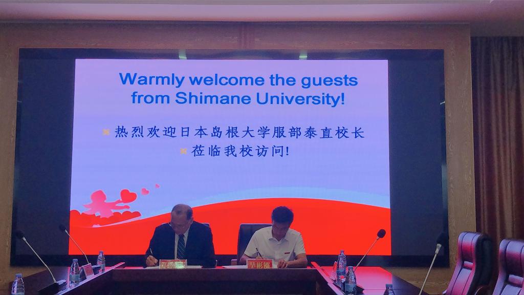 我校于2014年9月12日与日本岛根大学签订交流协议书及学生交流备忘录,此次服部校长来访也是与我校继续签订两校间的校际及学生交流协议。