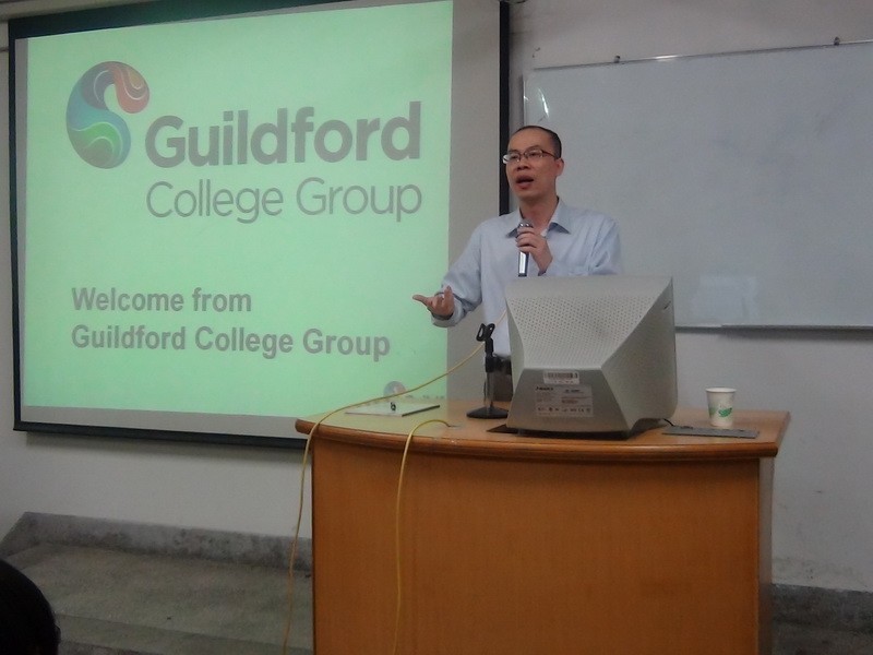 近日,英国吉尔福德学院集团驻中国办事处负责人覃宏先生一行2人莅临我校就2013年PDP项目面向外语系学生开展讲座。晚上19:00,由外语系吴克炎副教授主持的讲座于综合楼北区105教室顺利举行,参加讲座的有tyc5997太阳集团办公室李雪芬老师及有意向参加此项目的外语系2011级学生。