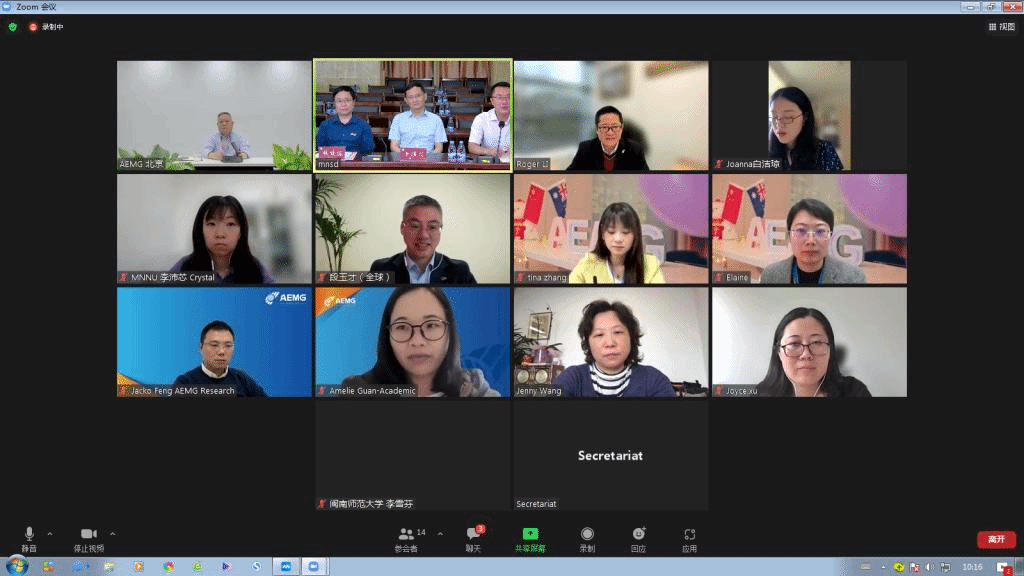 6月1日上午,我校与澳大利亚教育管理集团(AEMG)举行线上会议,共商合作项目落实。AEMG集团董事长、总裁李新庆,执行董事王晶,集团副总吕玉琪,我校党委副书记、校长李顺兴,党委常委、副校长林致远,tyc5997太阳集团、教务处、物信学院、计算机学院、新传学院、商学院相关领导及双方管理团队相关人员参加会议。