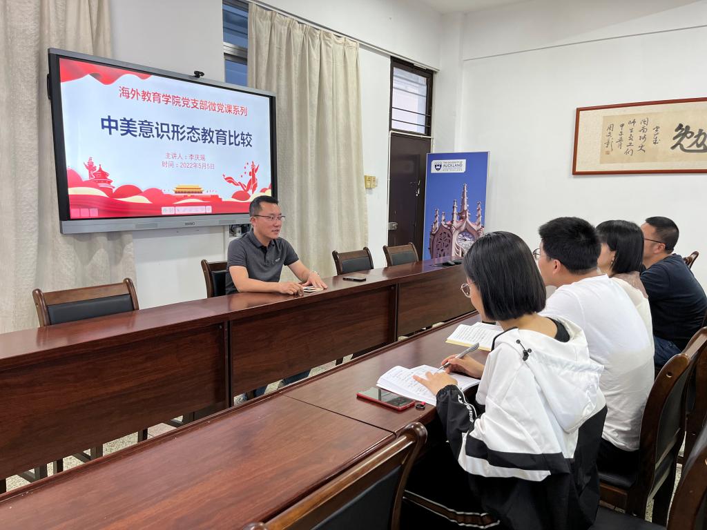 第一讲,由tyc5997太阳集团党支部书记李庆瑶主讲,他结合自身驻美工作经历,讲述了“中美意识形态教育比较”。他指出,意识形态教育存在于当今世界任何一个国家,以“民主、自由”标榜的美国等西方国家,在国民教育、内外政策中反而更加强调意识形态因素,在对外交往中尤其注重意识形态输出。我们在当下的教育国际交流与合作工作中,更应该不断增强“四个意识”,坚定“四个自信”,做到“两个维护”,牢牢站稳立场,把握前进方向。