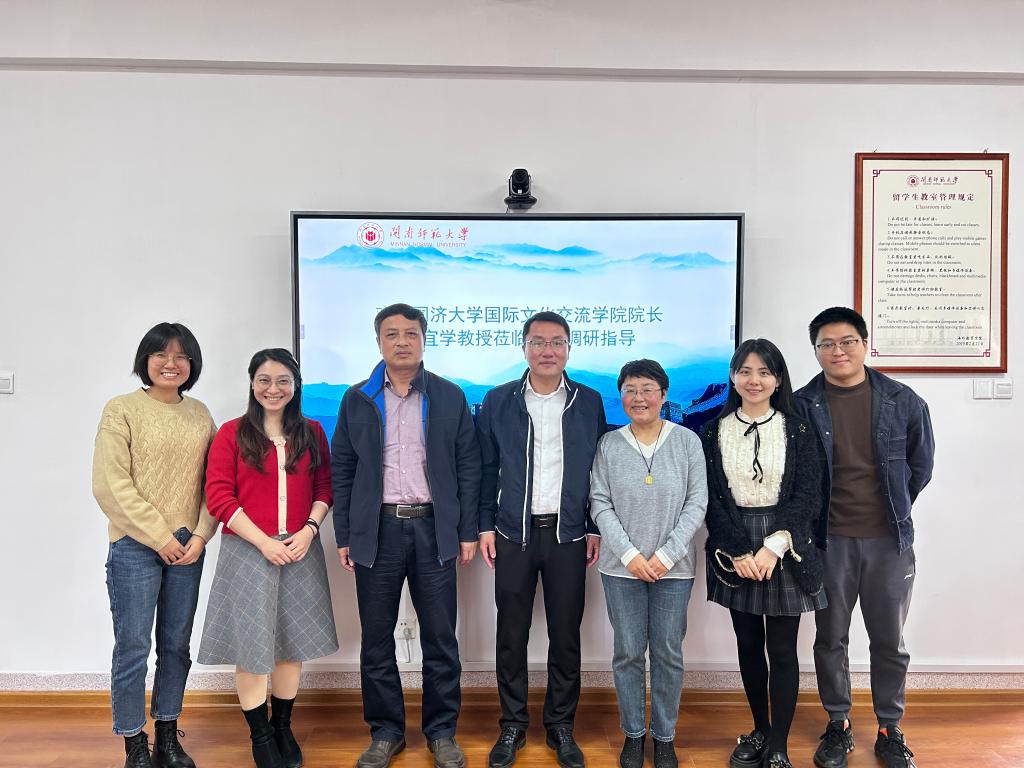 李庆瑶对孙宜学院长的来访表示热烈欢迎,并简要介绍了学校国际化办学、留学生管理、汉语言推广、学院工作职责等基本情况。孙院长对我院的接待表示感谢,并从国际学生管理、学科共建、对外交流等方面介绍了同济大学的基本情况。随后双方重点就做好华文教育传播、留学生讲好中国故事等方面展开深入的探讨和交流。