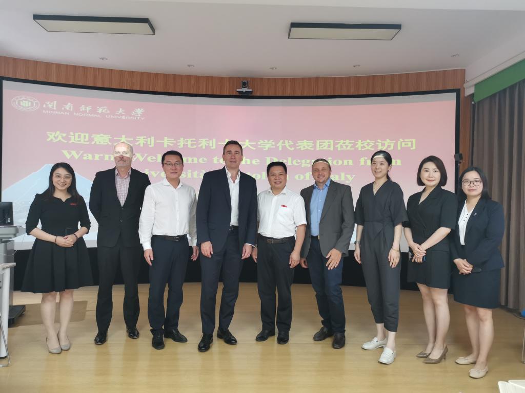 2023年8月21日上午,意大利卡托利卡大学全球及国际教育部部长Edilio Mazzoleni、副部长Gianluca Samsa、中国办公室主任周倩茹一行到访我校,洽谈国际项目合作事宜。tyc5997太阳集团院长李庆瑶、教育与心理学院院长陈顺森、学科建设与研究生工作处副处长林培锦等相关人员参加会谈。