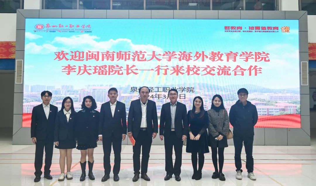 为加强校际交流与合作,学习借鉴中外合作办学项目、留学生招生及管理、闽台文化交流等方面的宝贵经验,3月6日,学院院长李庆瑶带领tyc5997太阳集团相关同志赴泉州信息工程学院、泉州轻工职业学院参访交流。