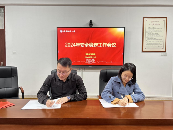 会后,李庆瑶代表学院与综合科、外事科、留学生管理科等相关负责同志签署2024年安全与稳定、综合治理目标管理责任书。