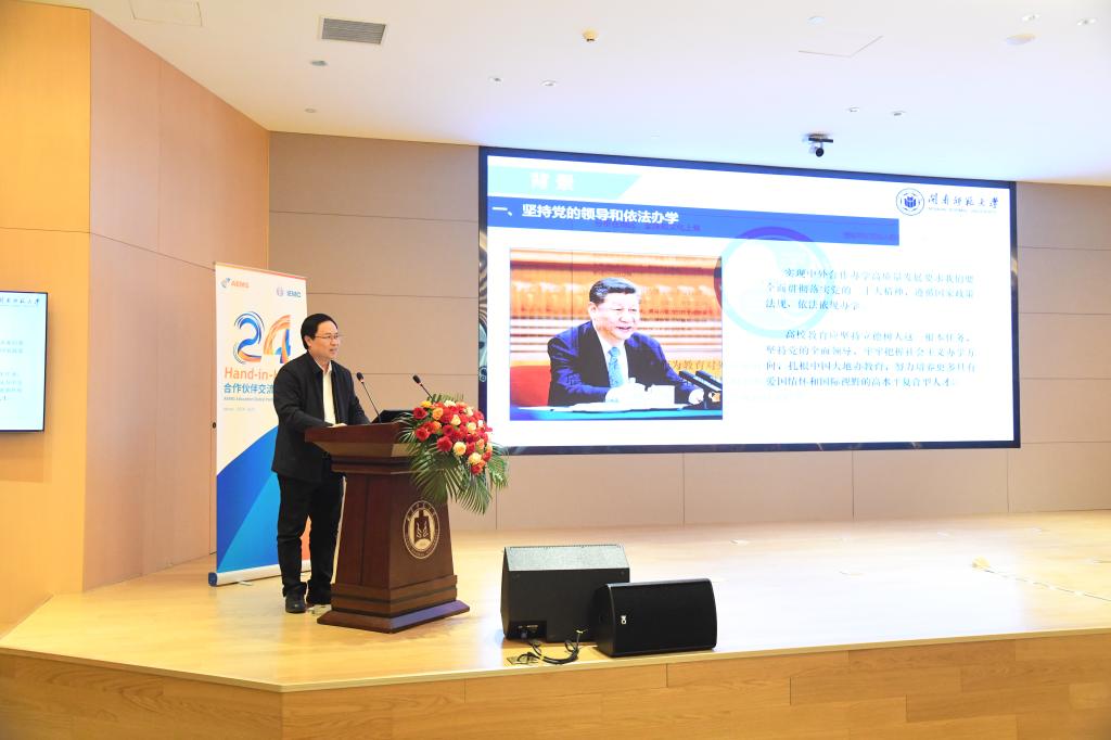 会上,林致远以“全球胜任力视角下的中外合作办学人才培养”为题,与参会人员分享在全球化和逆全球化交叠博弈的大背景下,如何保证中外合作办学的高质量发展,服务国家战略需求,培养具有全球胜任力人才的思考。
