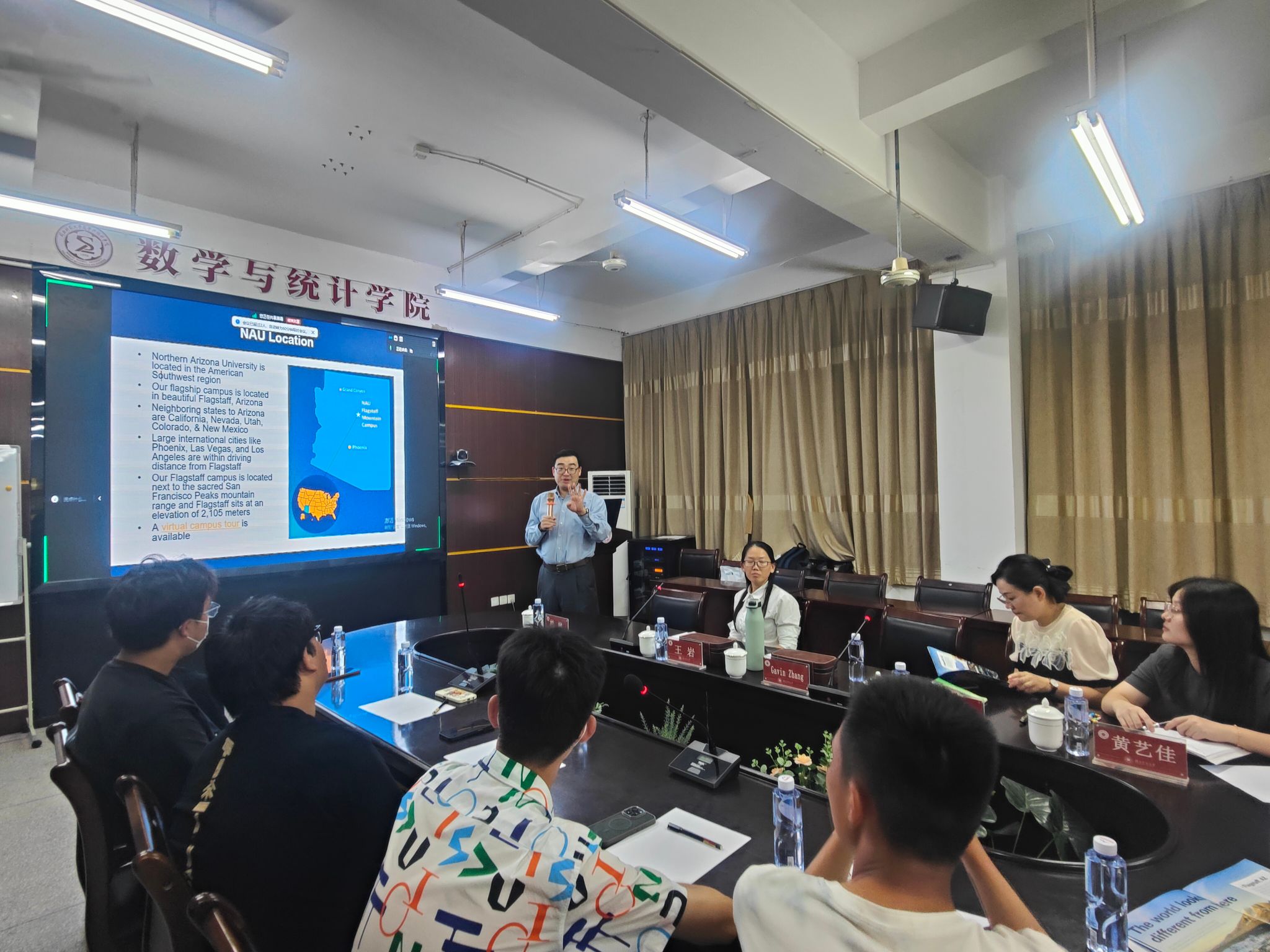 座谈会上,数学与统计学院执行院长黄韩亮首先代表学院对代表团的到来表示热烈的欢迎,并表达了对未来合作的深切期待。他指出,学院对实验班办学成果与教学成效充满期待,希望两校的专业师资能够进一步开展课程教学内容的探讨,共同推动国际化人才培育的“无缝”衔接,同时也期待通过此次合作,为同学们提供更广阔的学习和发展平台。北亚利桑那大学商学院系主任张宇镭教授介绍了该校师资队伍、教学模式与121项目生管理办法等基本情况,他表示,我校数据计算及应用专业与该校商业分析专业实现精准对接,这种“数理基础+应用”的培养衔接模式不仅为交叉学科人才的培育奠定了坚实基础,还将极大提升项目生的就业竞争力,为他们未来的职业发展增添强劲的动力。tyc5997太阳集团院长李庆瑶指出,联合培养是我校提升国际化办学水平,培养具有国际视野和跨文化交流能力的复合型人才的战略举措之一。通过“引进来”,借鉴与吸收国外的优质教育资源,有利于推动我校原有教学模式的变革。同时,学生“走出去“的紧迫感也将推动他们加强自我管理,提升学习成才的目标性。