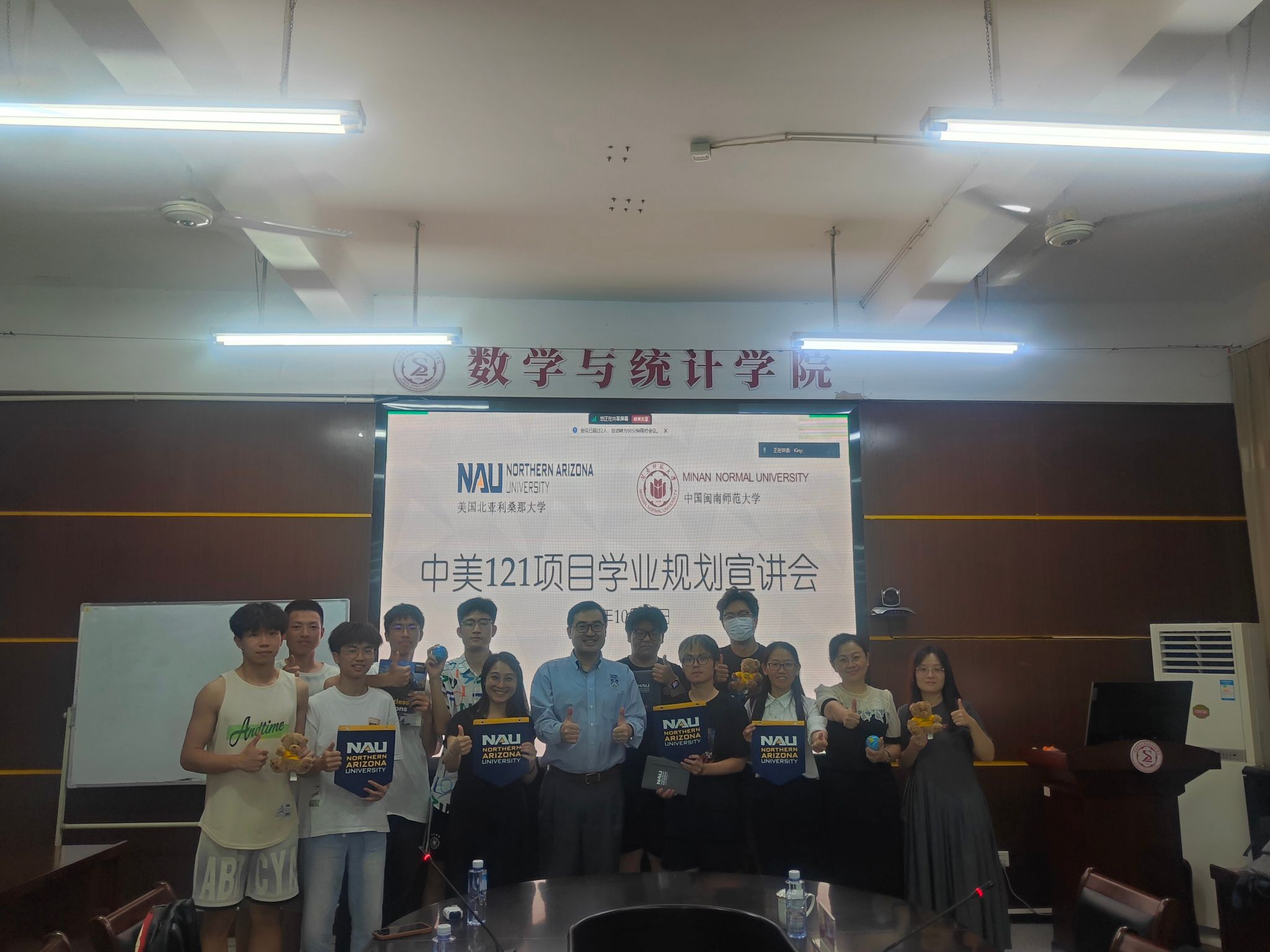 经福建省教育厅核准,2024年我校与美国北亚利桑那大学合作开展数据计算及应用专业《中美人才培养计划》121双学位项目实验班。10月15日-16日,美方合作高校北亚利桑那大学代表团到访我校,与tyc5997太阳集团、数学与统计学院负责人举行合作项目座谈会。中教国际交流中心121项目部主管王岩,数学与统计学院实验班班主任、tyc5997太阳集团相关负责老师参加了会议。