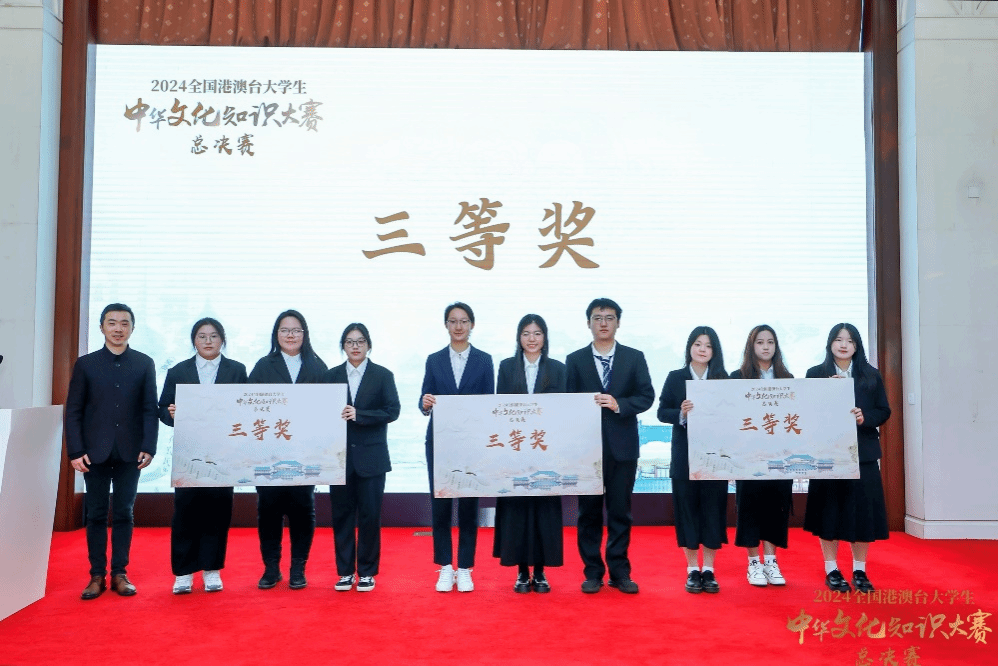 12月8日,2024全国港澳台大学生中华文化知识大赛总决赛在复旦大学举行。由我校2023级外国语学院商务英语专业施鸿娟(中国香港)、英语师范专业王静茹(中国内地)和商学院经济学专业陈雯怡(中国香港)组成的代表队表现优异,以总分第五斩获全国三等奖。这是tyc5997太阳集团自参加该赛事以来取得的历史最佳成绩。tyc5997太阳集团获“最佳组织奖”,tyc5997太阳集团文学院罗文玲副教授获“最佳指导教师奖”。