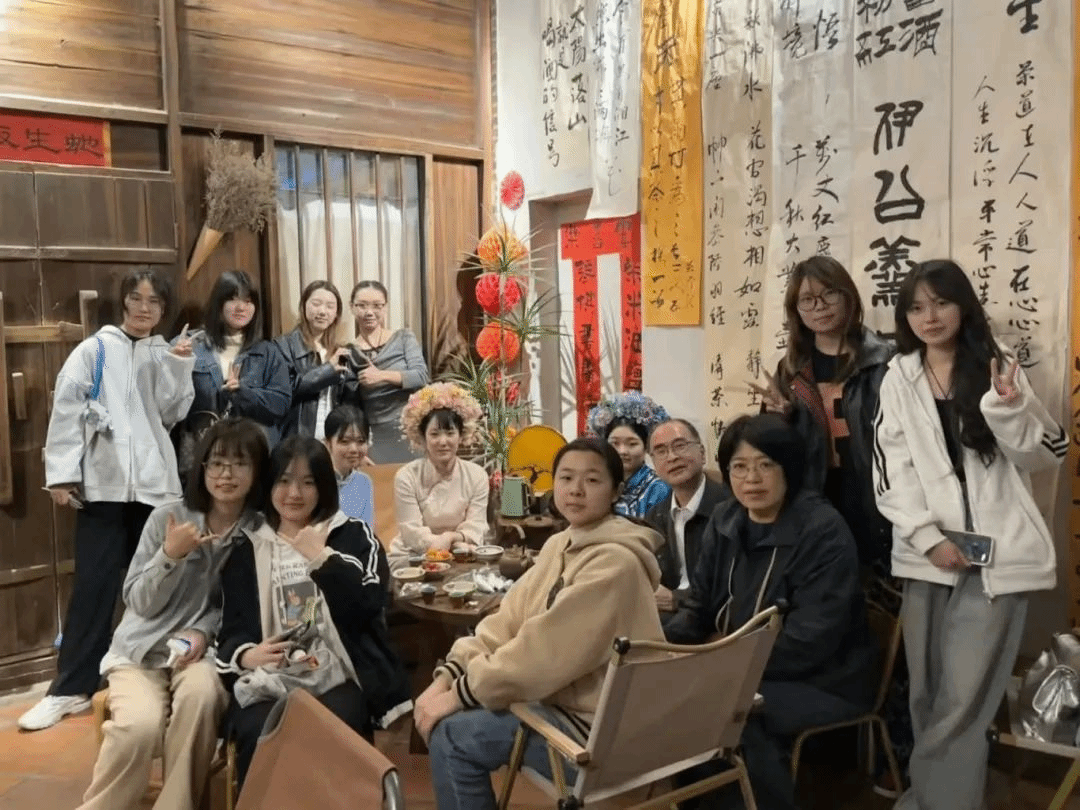 3月6日-7日,常叶大学师生在闽南师大外国语学院日语系师生的陪同下探访漳州古城。在古城非遗馆中,漳州南词非遗传承人林秀珍以婉转的南词弹唱拉开文化交流的序幕,千年古乐在跨语言的演绎交流中焕发新生。随后在非遗展区,闽南师大外院学子用日语介绍棉花画的工艺细腻、芗剧的唱腔独特、布袋木偶的灵动演绎等中华传统文化的奥秘。期间的簪花体验环节更成为中外文化符号的碰撞融合,“好漂亮,能在这里体验到中华文化技艺真的太幸运了,我一定要多拍一些照片回去”,常叶大学学生米津小智用日语感叹道。