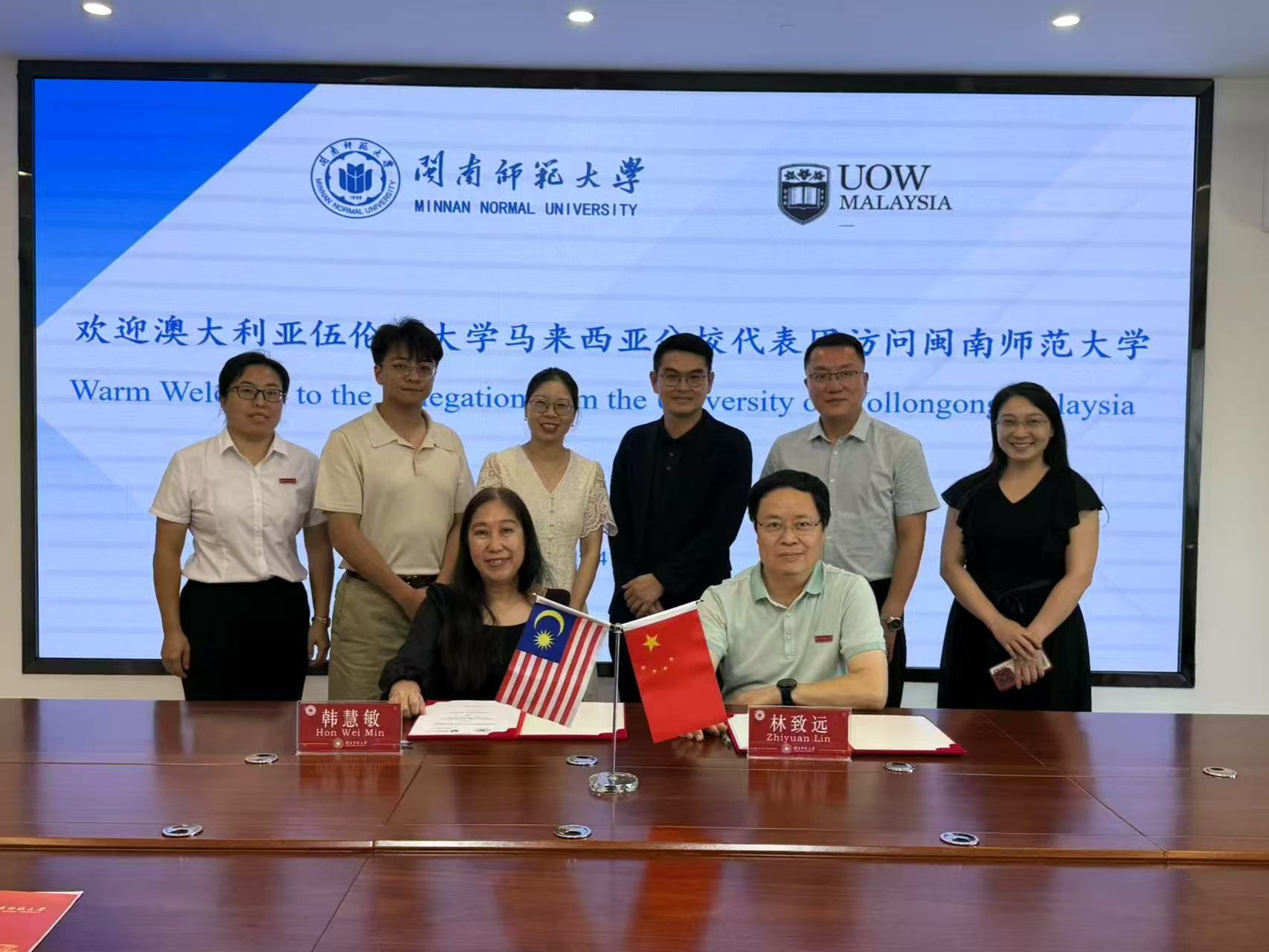 会上,韩慧敏介绍了伍伦贡大学马来西亚分校的办学特色、学科优势及国际化发展成果。她表示,该校作为澳大利亚伍伦贡大学的海外分校,依托优质教育资源,致力于培养具有全球竞争力的专业人才。林致远从办学历史、学科建设及国际化战略等方面介绍了tyc5997太阳集团的发展战略。他指出,我校致力于与东盟国家高校建立深度合作关系,为加快建设“东南亚知名、特色鲜明、多学科融合发展”的高水平师范大学不断迈出新的步伐。双方一致同意,未来可在导师互聘、联合培养、华文教育及区域国别研究等领域深化合作,共同提升两校师生的国际视野与学术水平。双方签署了两校合作谅解备忘录,并就联合培养、师生交流等具体合作事项达成共识。