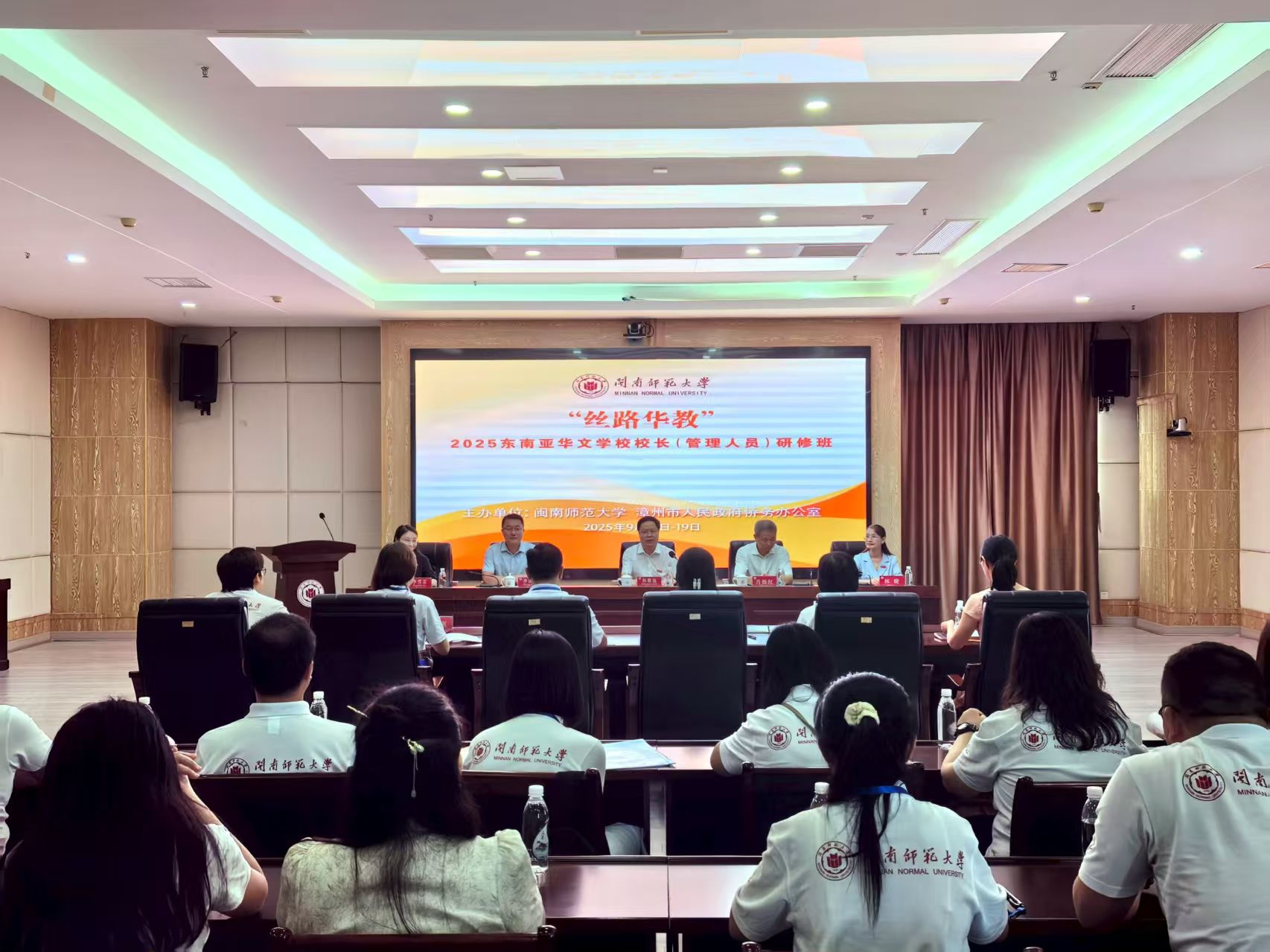 9月14日上午,“丝路华教”东南亚华文学校校长(管理人员)研修班和“丝路寻根”《诗经》古琴弦歌跨文化交流研修班开班仪式在我校举行。来自马来西亚、越南等国40余名华文学校教师及马来西亚新纪元学院师生代表来漳,开启为期七天的华文教育教学研修与跨文化交流之旅。