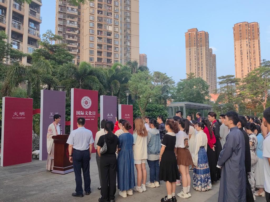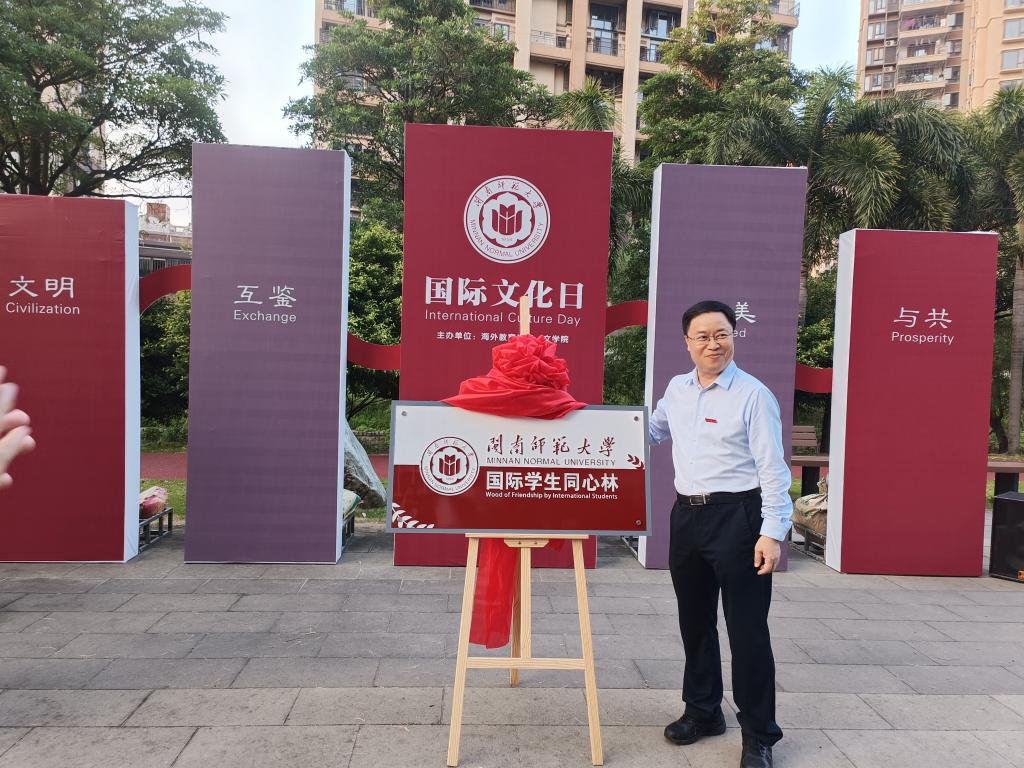 来自马来西亚的颜伟轩同学作为外国留学生代表发言。祖籍泉州永春的颜伟轩同学能讲闽南话、广府话、马来语、英语以及汉语普通话,他自小在华校学习,心怀寻根之梦选择回祖籍国留学。他表示,“树有根,水有源;人有祖,知渊源。”感谢学校精心策划“国际文化日”活动,为来自各国的留学生建造“国际学生同心林”,为留学之旅留下羁绊与回忆。他励志好好学习,未来做中马友谊的使者,传播和平与繁荣,呼吁所有留学生们能携起手来,以“国际学生同心林”谱写世界和平友好“同心圆”。
