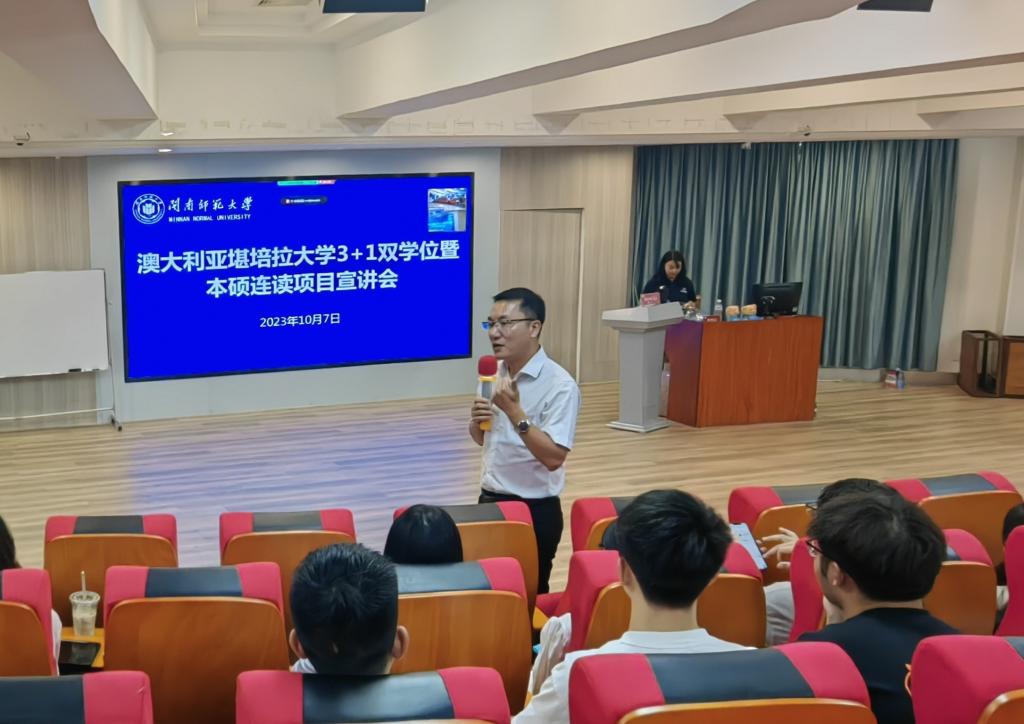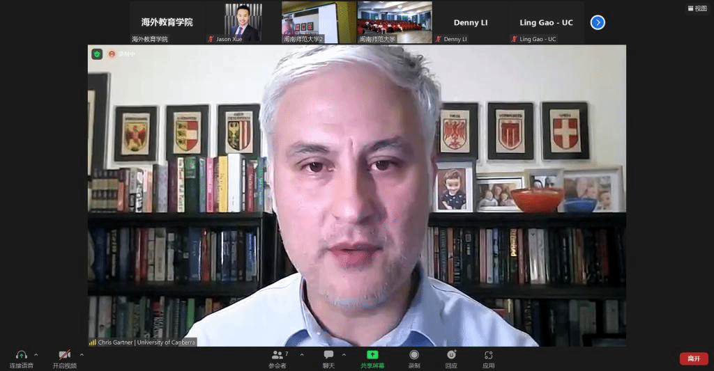 10月7日下午,tyc5997太阳集团与澳大利亚堪培拉大学合作开展的3+1双学位暨本硕连读项目宣介会于博文楼西区梯教举行。宣介会特别邀请堪培拉大学副校长克里斯·加特纳以线上的形式出席,我校tyc5997太阳集团、物理与信息工程学院、计算机学院、新闻传播学院、商学院相关负责人及计算机科学与技术、经济统计学、电子信息工程、广播电视编导等专业的本科生参加宣介会。会议由tyc5997太阳集团副院长李雪芬主持。