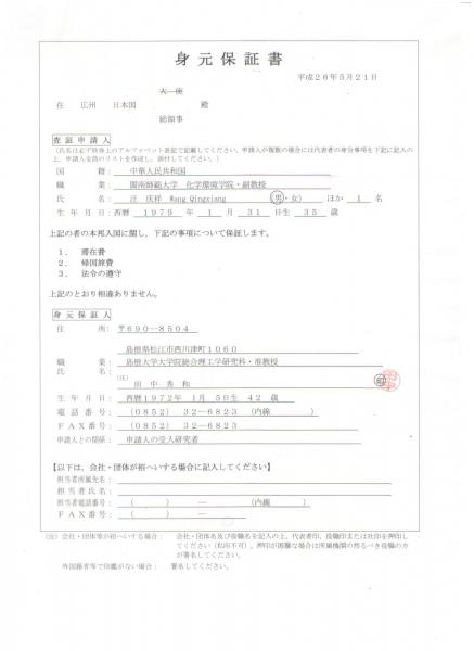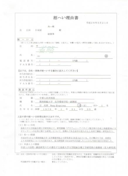 应日本岛根大学的邀请,我校拟派遣研究生处汪庆祥老师于2014年7月15日至8月31日赴日本岛根大学综合理工科学院短期访问并与该院田中秀和副教授进行学术交流。田中教授主要从事无机功能材料(如羟基磷灰石基复合物)的合成和表征,在《Mater. Res. Bull》、《Colloids Surfaces A》等国际著名学术期刊发表了70余篇学术论文,在新型功能纳米材料的设计和合成方面具有很好的成果和经验。而我校汪庆祥博士一直从事电化学传感分析与应用研究,已在《Biosensors and Bioelectronics》、《Analytical Chimica Acta》等国际SCI期刊上发表了40多篇SCI论文。基于功能纳米材料的电化学分析是纳米科学和电分析化学领域的交叉学科,是目前自然科学领域的研究热点。此次汪庆祥博士受日本田中副教授的邀请,希望能够探讨二者各自学术上的特长,并找到二者的结合点,并为以后开展新型电化学功能材料设计与合成、基于新型功能纳米材料的电化学传感应用等方面的研究做前期准备,商讨相关事宜。