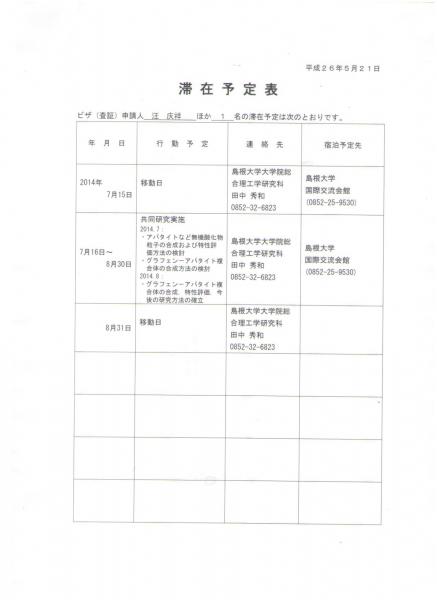 此次参访所需费用约合人民币4万元,其往返旅费及在日本期间的有关费用由汪庆祥博士课题经费承担。