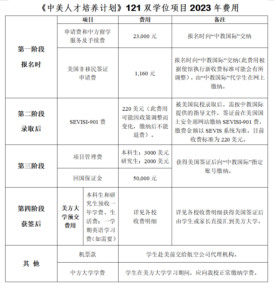 1.请登录项目官方网站:www.cciee121.com查看《中美人才培养计划》121双学位项目的详细情况,2023年招生简章(附件1)