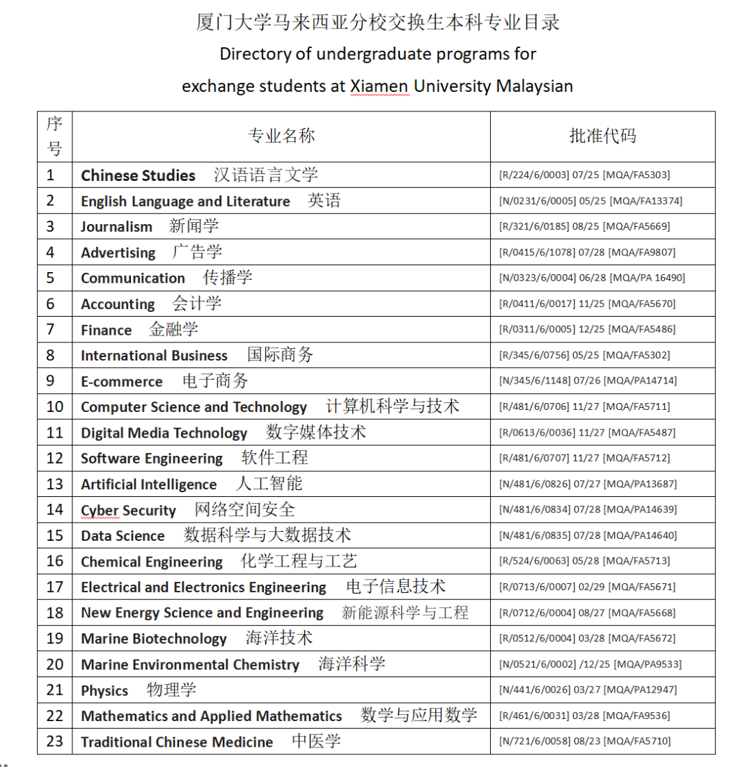 在学生自愿的基础上,由学生所在学院参照我校本科专业的课程设置和培养方案,指导学生根据厦门大学马来西亚分校同类本科专业和相应学期的课程清单选择可修学的课程进行学习。