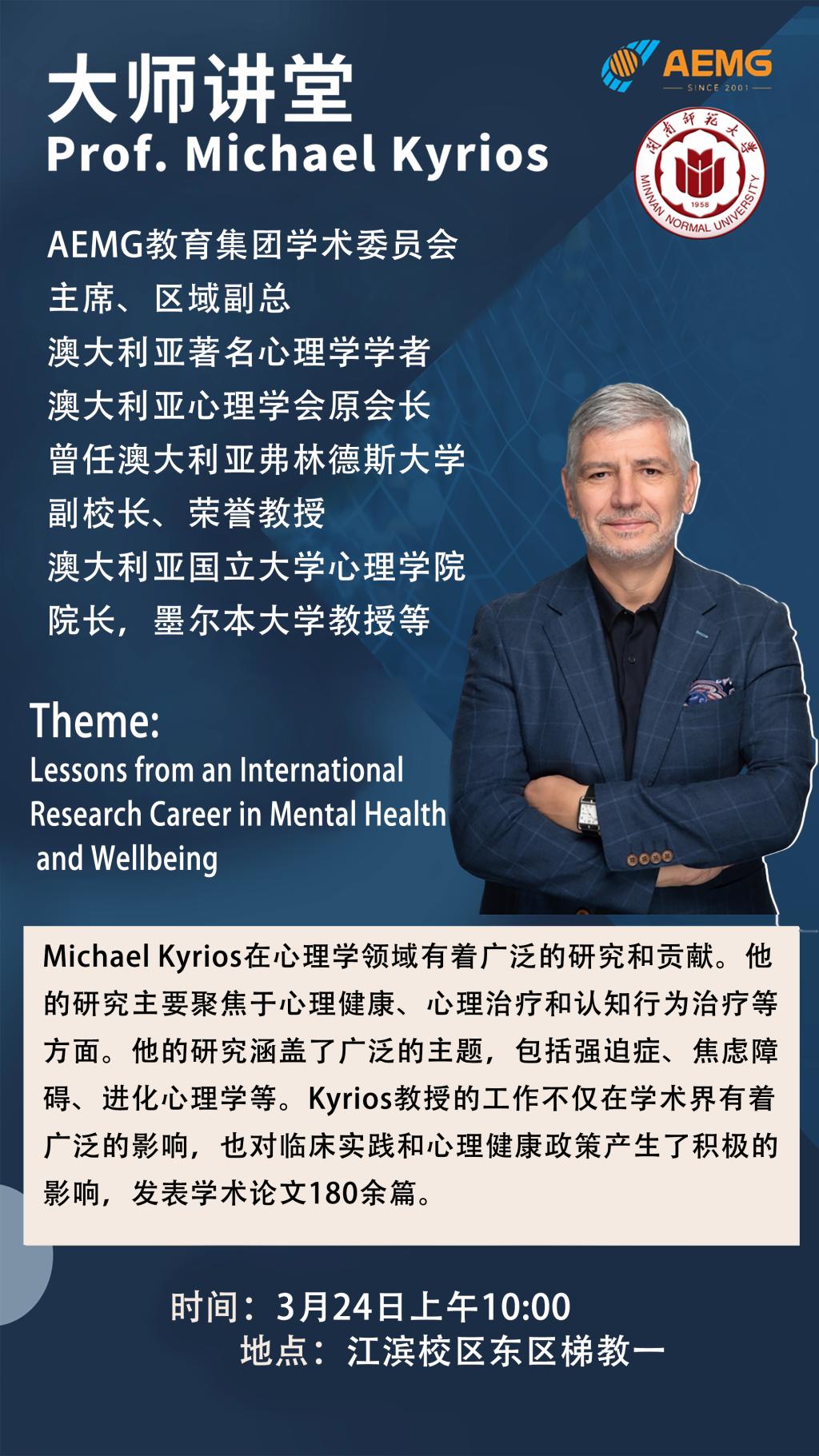 主讲人:Michael Kyrios(AEMG教育集团学术委员会主席、曾任澳大利亚弗林德斯大学副校长、澳大利亚心理学会原会长)