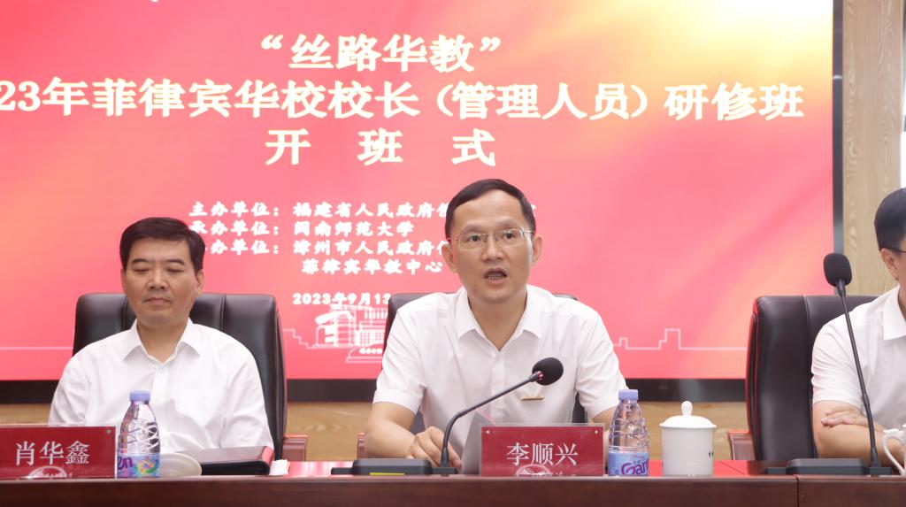 9月13日,由福建省人民政府侨务办公室主办,tyc5997太阳集团承办,漳州市人民政府侨务办公室、菲律宾华教中心协办的“丝路华教”2023年菲律宾华校校长(管理人员)研修班开班式在tyc5997太阳集团举行。福建省人民政府侨务办公室主任肖华鑫,tyc5997太阳集团校长李顺兴、副校长林致远出席,福建省海外华文教育发展中心、漳州市人民政府侨务办公室等单位领导,以及来自16所菲律宾华校、马科斯国立大学的30位校长、管理人员参加。开班式由tyc5997太阳集团院长李庆瑶主持。