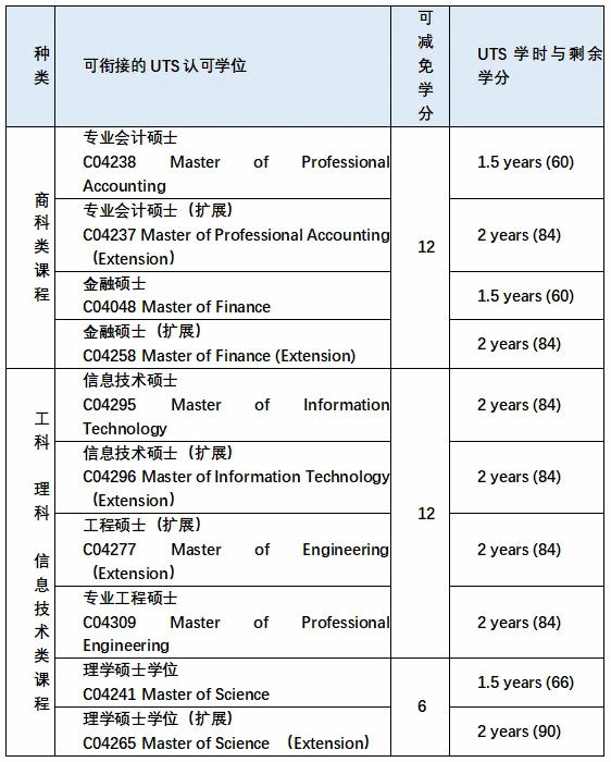 *注:学生完成境内阶段国际学分课程,赴悉尼科技大学学习以上专业,可豁免相应学分。